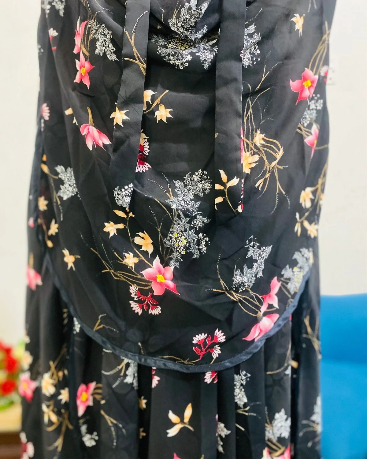 • ফেব্রিক: প্রিমিয়াম চিফন + জর্জেট (নরম, হালকা ও শ্বাস-প্রশ্বাসযোগ্য)