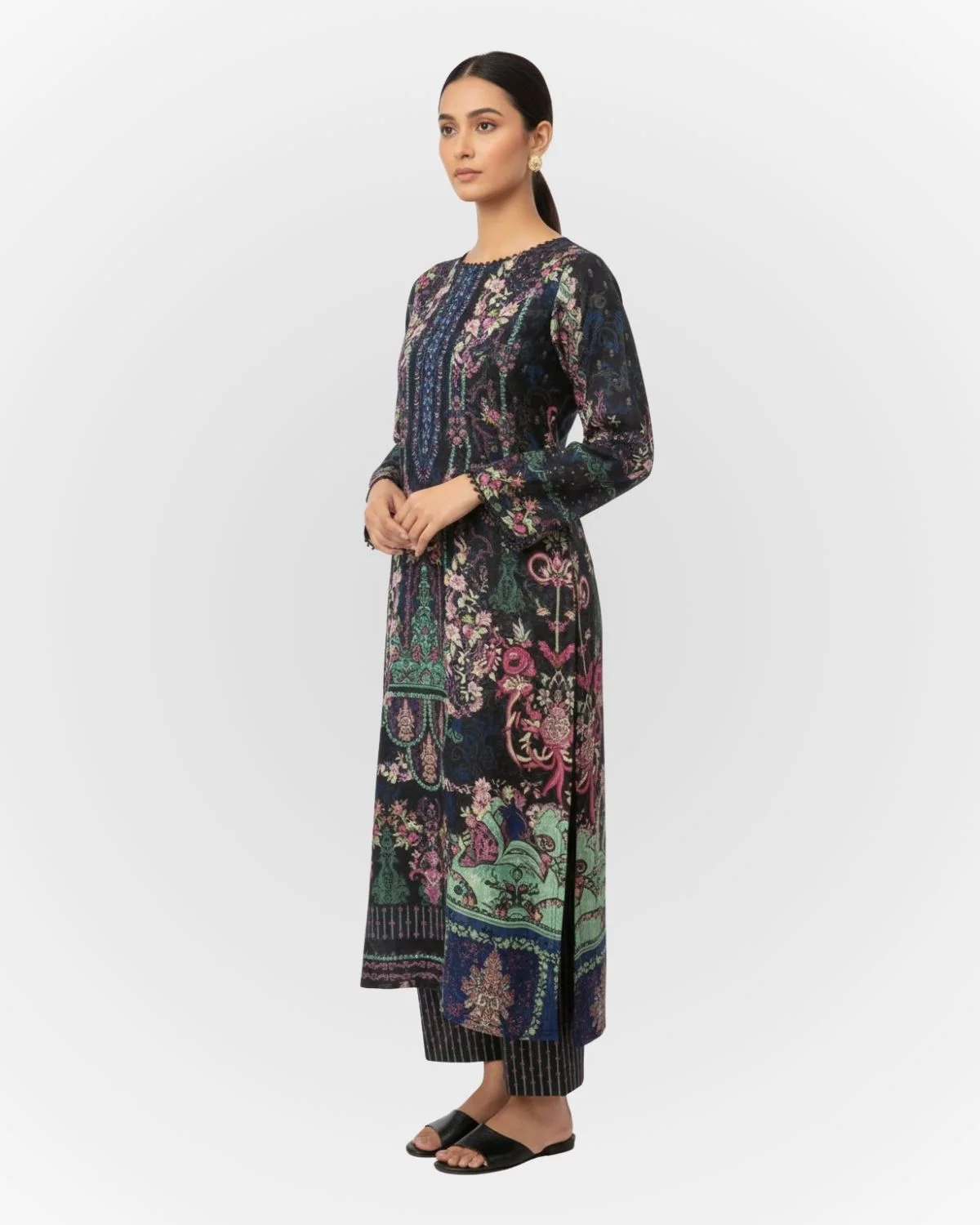 Back/Sleeves: Digital printed lawn embroidered.